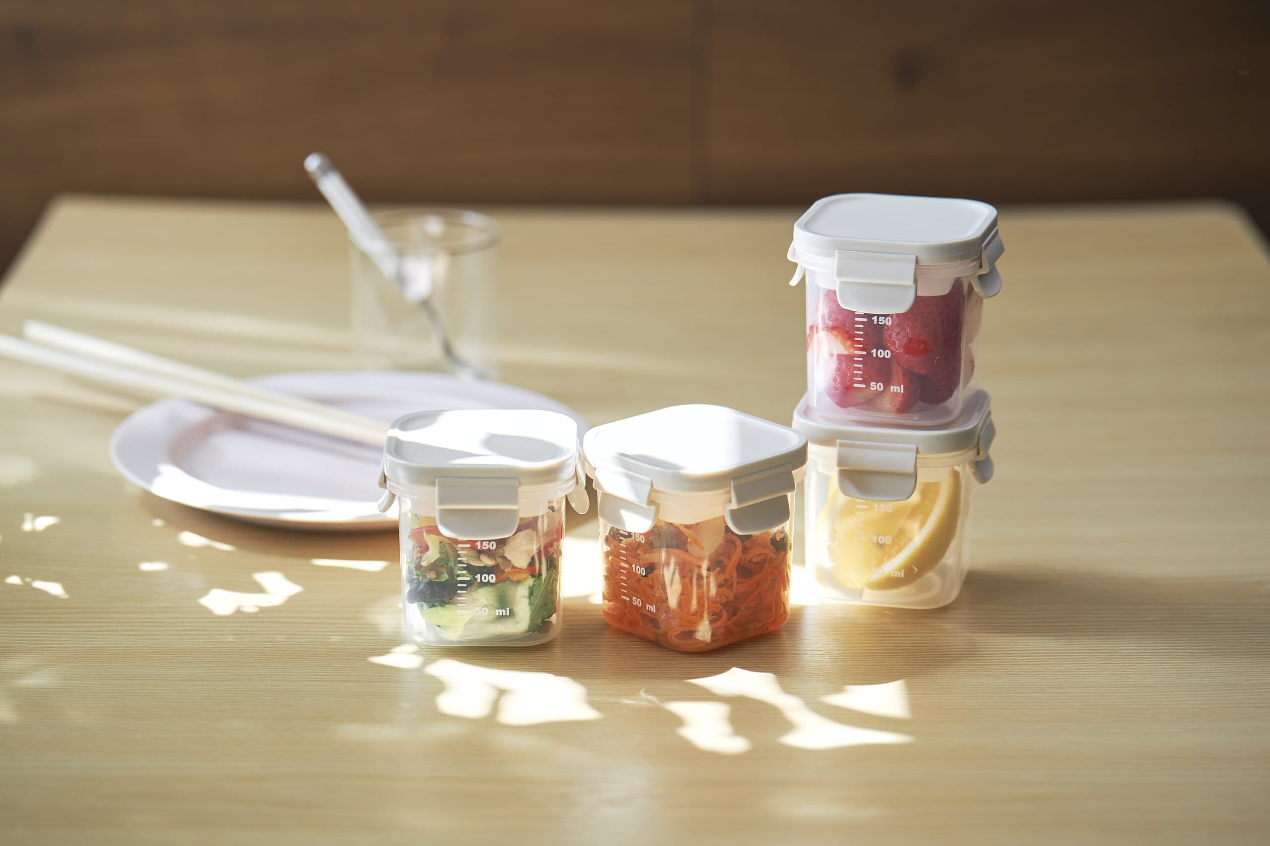 忙しい朝の時間を豊かにする常備菜。このD2Cブランドの保存容器が持つ「透明度」と中身の鮮やかさを引き立てるため、自然光を活かしたライティングで撮影しました。